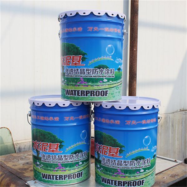 水泥基渗透结晶型防水涂料是采用42.5#以上P.I或P.II硅酸岩水泥、石英砂为基料,掺入高活性化学物质组成的灰色粉状防水涂料,当涂刷于混凝土表面时,本产品中含有的高活性物质在自由水的激发下迅速游离出独有的活性基团R2-,并溶解分散到水中,在有水存在的混凝土表面形成活性基团R2-的高浓度区。由于浓度梯度的存在,活性R2-基团沿着水分向混凝土基体内部扩散。由于混凝土硬化水泥浆体中含有大量的六方片状Ca(OH)2晶体,当活性R2-基团遇到Ca(OH)2晶体附近的Ca2+离子时,形成溶于水的络合物Ca2+-R2-,从而增大Ca2+的溶解度,促使水泥水化产物Ca(OH)2晶体溶解。